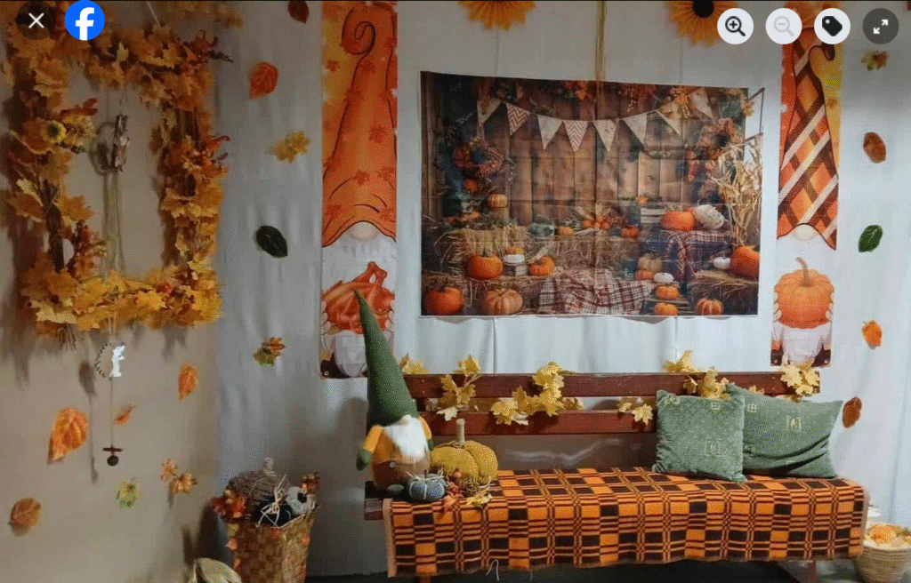 A dekoráció színei és hangulata az őszi természet varázsát, a közösségünk melegségét és a gyermekek derűjét tükrözik.